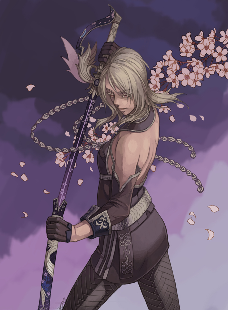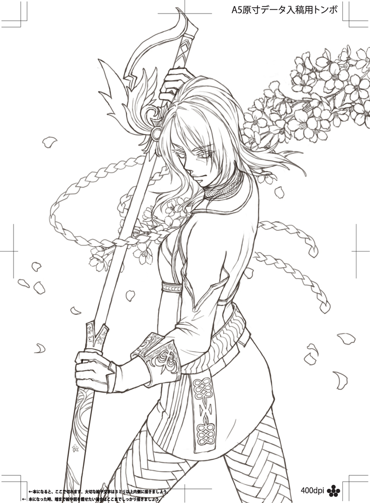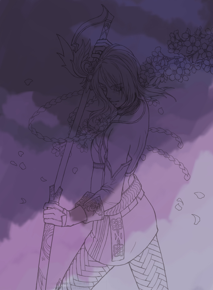 刀身の模様は、先に全体をグラデーションで塗った後、細かい花を描き込み、
